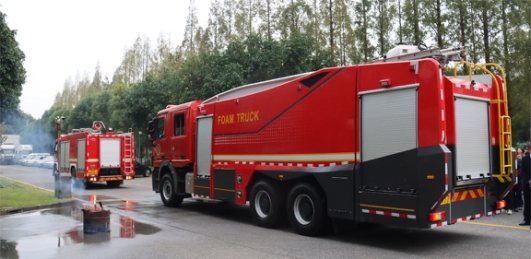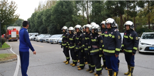 本次消防演習與昆山高新區(qū)消防中隊聯(lián)動,消防車和消防員也抵達了公司現(xiàn)場,進行消防安全指導檢查。