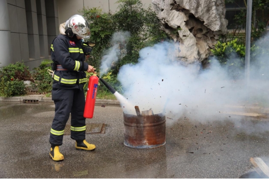 高新區(qū)消防中隊同志講解并演示滅火器使用方法