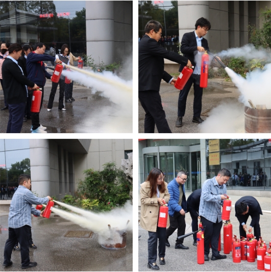 員工們手持滅火器參加現(xiàn)場滅火體驗