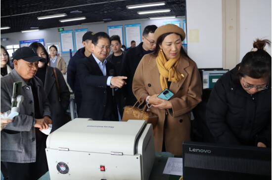 隨后,考察團(tuán)一行深入生產(chǎn)車(chē)間。在生產(chǎn)測(cè)試區(qū),專(zhuān)家們表現(xiàn)出了濃厚的興趣,重點(diǎn)考察了天瑞儀器的EDX-T鍍層測(cè)厚儀和EDX3000PLUS X熒光貴金屬檢測(cè)儀。劉博士現(xiàn)場(chǎng)為考察團(tuán)演示了設(shè)備操作,并詳細(xì)講解了這兩款儀器的技術(shù)優(yōu)勢(shì)與應(yīng)用場(chǎng)景。成都表面工程協(xié)會(huì)考察團(tuán)一行對(duì)天瑞儀器的技術(shù)實(shí)力和產(chǎn)品性能給予了高度認(rèn)可。