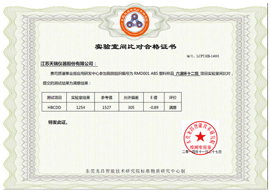 附錄1:實驗室間比對合格證書(六溴環(huán)十二烷)