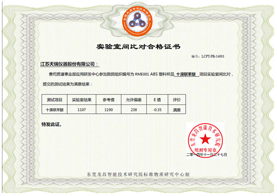 附錄3:實驗室間比對合格證書(十溴聯(lián)苯醚)