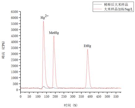 本文參考國家衛(wèi)生和計劃生育委員會發(fā)布的《GB 5009.17-2014 食品中甲基汞的測定》,通過HPLC-ICPMS聯(lián)用,采用C18柱,利用等度洗脫的方式對稀酸浸提后的大米進行了分析,同時對樣品采取了加標(biāo)處理,且加標(biāo)回收率良好。測試結(jié)果表明,該方法能夠快速準(zhǔn)確地進行大米樣品中汞形態(tài)的分析。