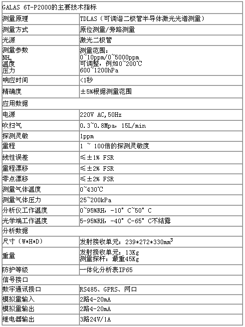 激光在線氣體分析儀(氨氣)GALAS 6T-P2000選取以基于可調(diào)諧二極管(TDLAS)激光吸收光譜技術(shù)的激光在線氣體分析儀采用原位探桿式激光分析法,測(cè)量氨逃逸量。