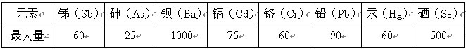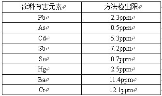 按國標(biāo)中針對涂料中有害元素含量應(yīng)小于或等于下表中相應(yīng)元素的最大限量要求。