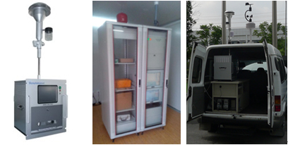 圖1 天瑞儀器EHM-X200大氣重金屬在線分析儀圖片(從左到右分別為儀器主機(jī)、站房機(jī)柜上的儀器和車載儀器)