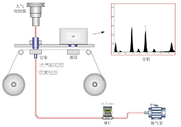 儀器以恒定的工況流量將空氣吸入顆粒物切割器中,以PM2.5為例,動力學(xué)直徑在2.5um附近及以下的顆粒污染物進(jìn)入到儀器的富集系統(tǒng)中。經(jīng)過一段時間的富集后,富集系統(tǒng)自動切換成β射線分析系統(tǒng),利用β射線的衰減與顆粒物的質(zhì)量濃度成指數(shù)的關(guān)系,對顆粒物的質(zhì)量濃度進(jìn)行分析。然后卷膜系統(tǒng)地將富集有空氣顆粒物的濾紙移動到X射線熒光分析系統(tǒng),分別利用X射線熒光的能量和強度對顆粒物中的元素成分進(jìn)行定性和定量的分析。