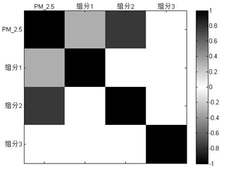 為了進(jìn)一步研究PM2.5與大氣重金屬之間的關(guān)聯(lián),并為PM2.5的控制提供方向,我們通過已經(jīng)劃分的三個組分與大氣PM2.5濃度進(jìn)行相關(guān)性分析。結(jié)果如圖5,發(fā)現(xiàn)該地區(qū)主要影響PM2.5的污染源為組分2(冶金工業(yè)廢氣)。