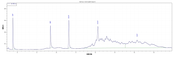 選取某品牌快遞包裝袋進(jìn)行鄰苯二甲酸酯的快篩測(cè)試,譜圖和檢測(cè)結(jié)果如下: