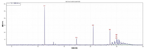 圖14. 6種鄰苯二甲酸酯標(biāo)準(zhǔn)物質(zhì)總離子流色譜圖