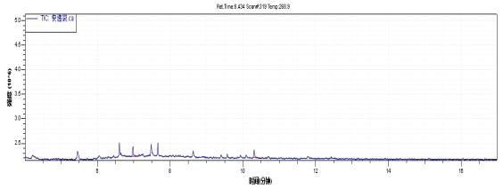 選取某品牌快遞包裝袋按照本方法進(jìn)行測(cè)試,譜圖和檢測(cè)結(jié)果如下:
