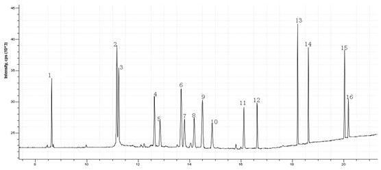 圖1. 16種有機磷標準溶液TIC圖