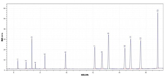 圖2 13種有機氯標準溶液TIC圖